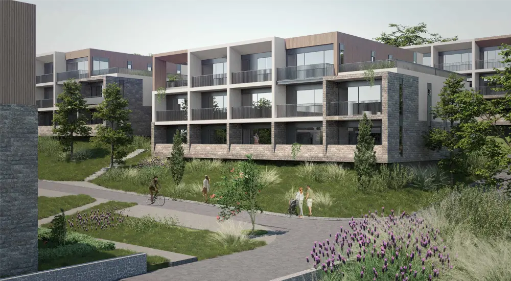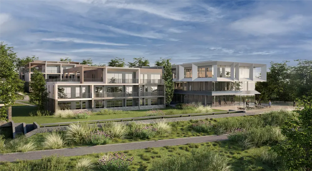 The mixed-use complex consists of 10 freestanding buildings arranged in three rows, leaving space for greenery and visual openness. The mixed-use building is positioned along the main road. This complex offers a harmonious urban and functional concept, carefully balancing residential and commercial spaces to preserve the quality of life and the aesthetic value of the neighborhood. It combines functionality, aesthetics, and environmental integration, providing a high-quality space for both living and business.