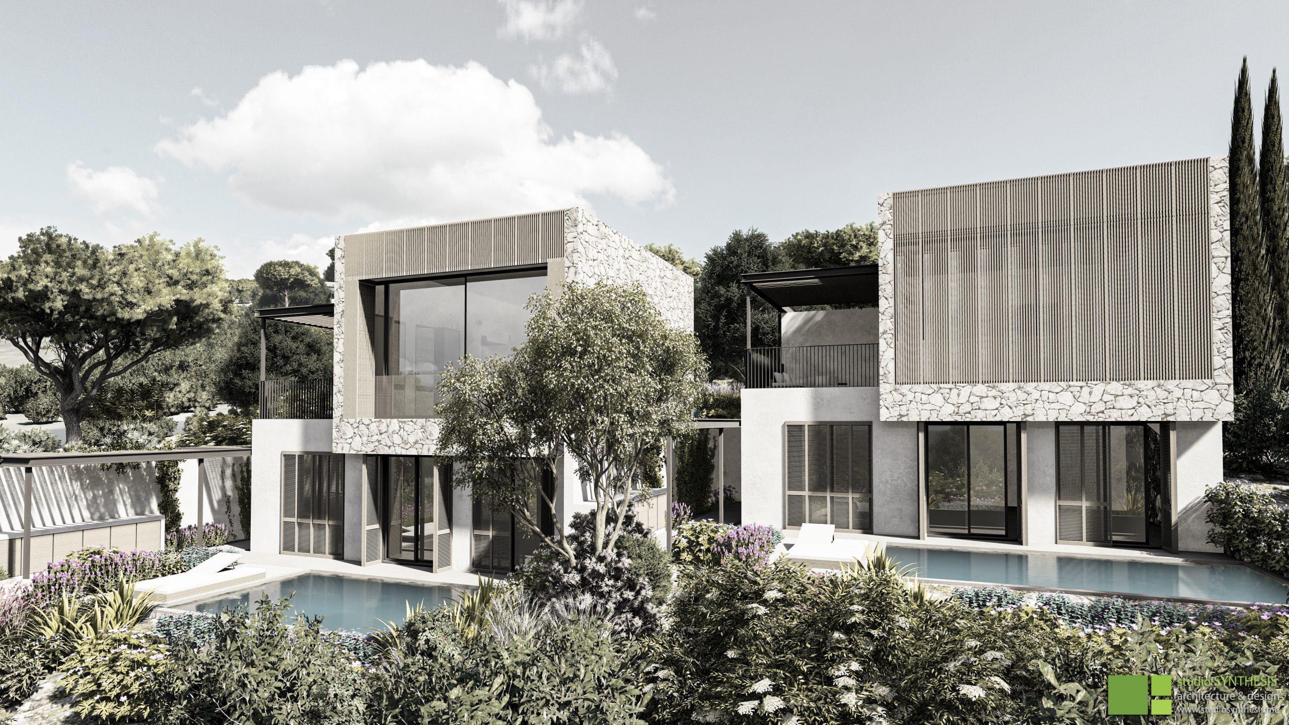 When defining the volume of the structures, the aim was to safeguard the sea views, preserve existing landscape characteristics, therefore the entire resort was designed as unobtrusive volumes broken down into separate structures with dimensions that blend with cascaded elements of existing landscaping, an arrangement typical for this area.